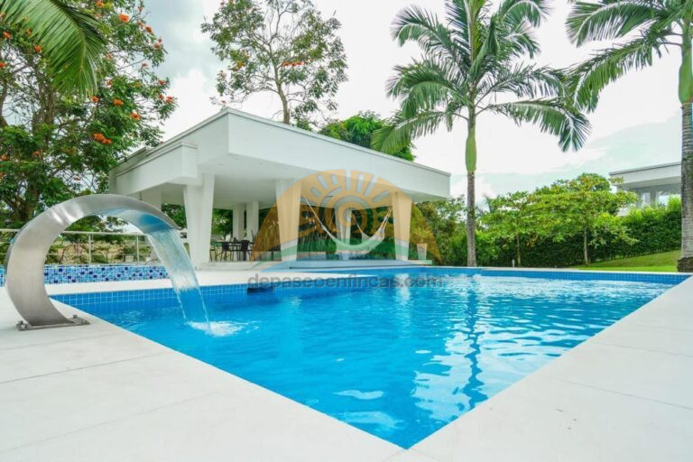 Hermosa finca en Combia, Pereira. Dispone de Habitaciones 6 suites, con televisión y baño privado. Capacidad para 12 personas, Piscina Kiosco o salón de eventos doble altura, Rana, Río, Sendero, Animales salvajes, Avistamiento de aves, Despampanante paisajismo.
